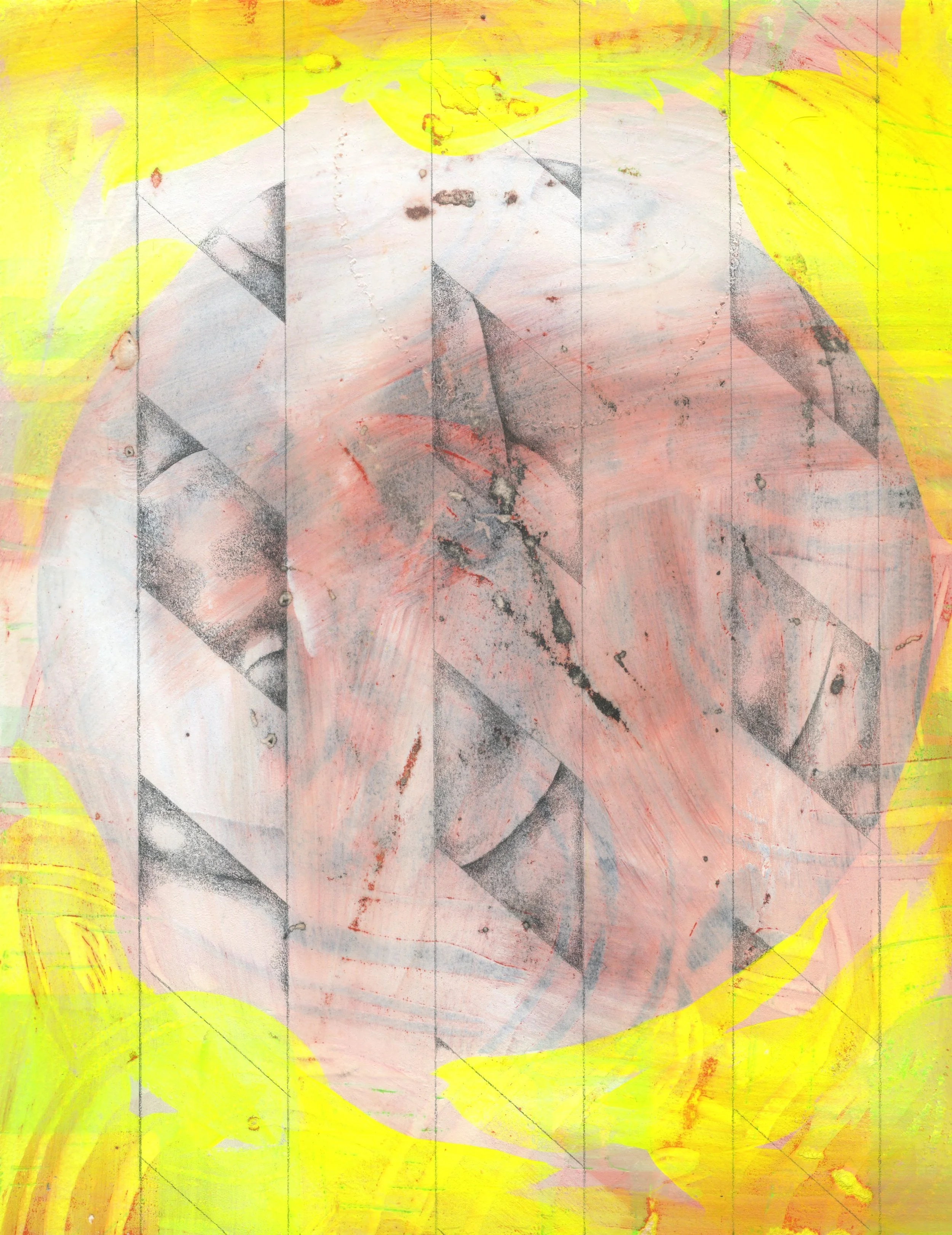 ANXIETY STUDY 3, 2024, Graphite, acrylic and colored pencil on paper, 10 by 10 inches.